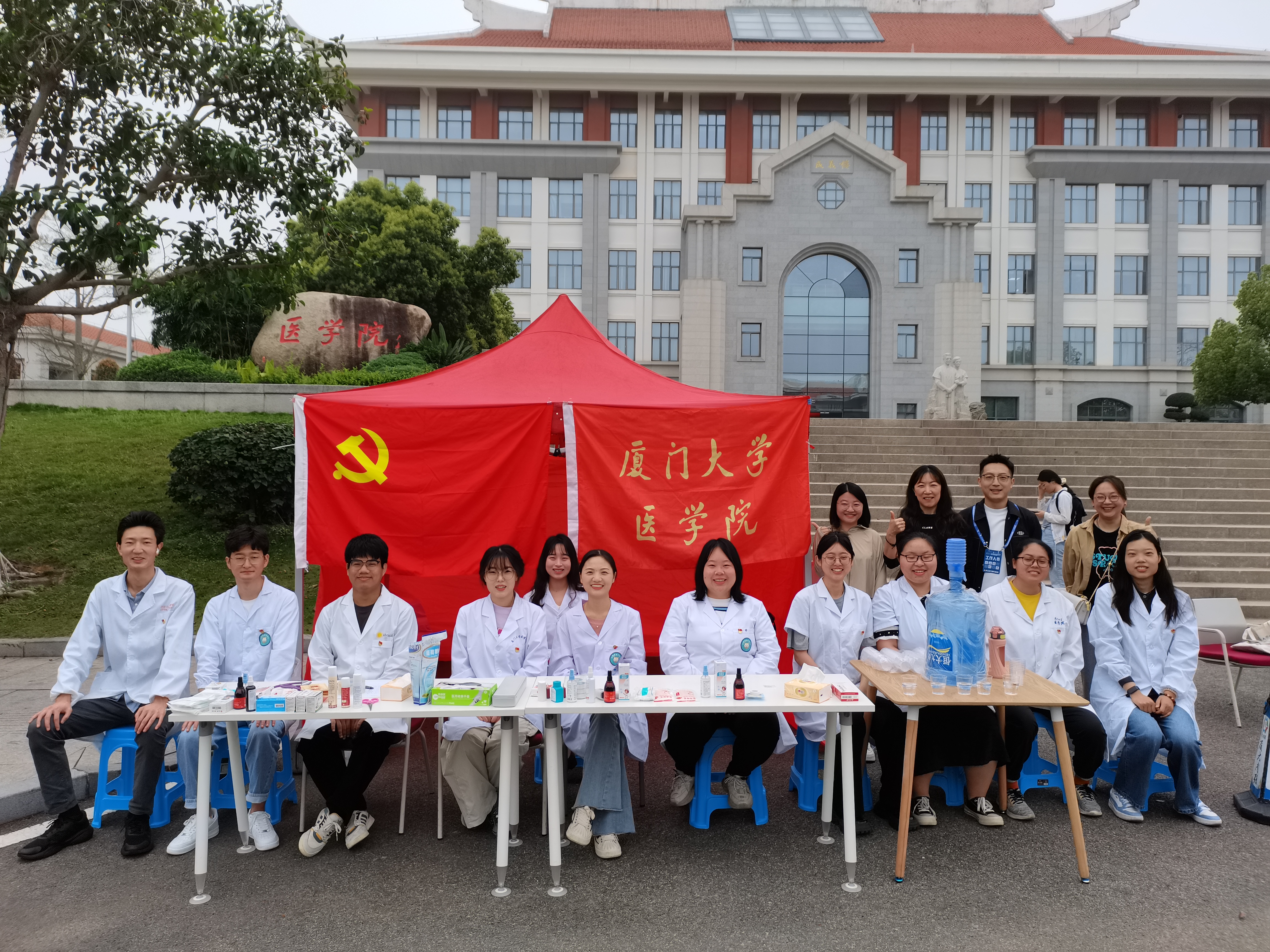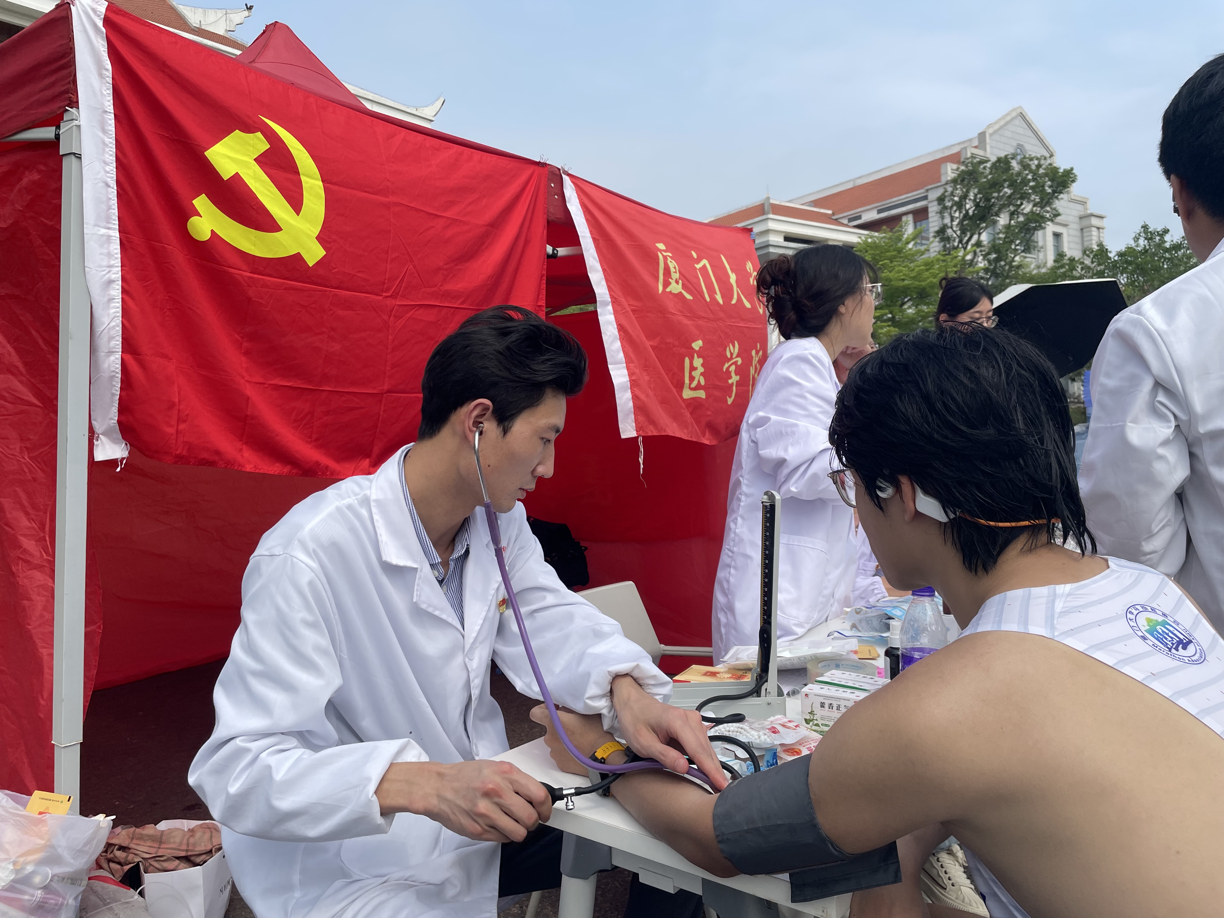 为纪念校主陈嘉庚先生诞辰150周年,庆祝厦门大学建校103周年,4月14日上午,2024厦门大学首届半程马拉松赛暨校庆环校跑活动在思明校区、翔安校区、漳州校区同步举行。其中,首届半程马拉松赛安排在翔安校区举行,比赛全程21公里,参赛跑者4600余人(其中厦大校友和社会跑者3500余人);翔安校区环校跑全程7公里,参加的师生2500余人。由于赛事首次举办,人数多、任务重、压力大,医学院师生热情响应、踊跃参赛,并主动发挥专业优势,积极投身赛事的服务保障工作。