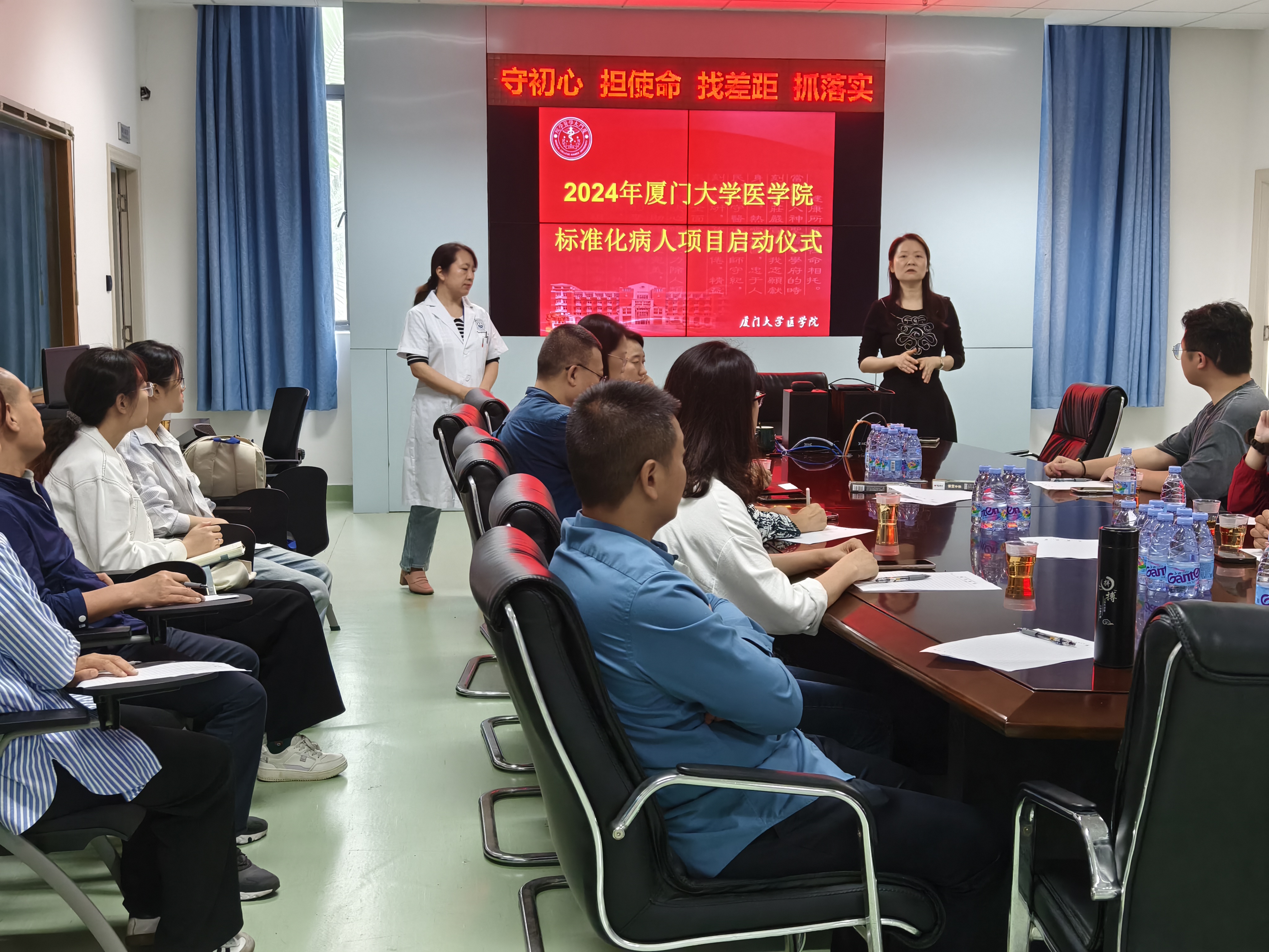 为进一步加强厦门大学医学院标准化病人(SP)团队建设,2024年4月28日上午,医学院第六期标准化病人培训启动仪式在国家级医学虚拟仿真实验教学中心A205会议室召开。院长助理、教务办主任李晴副教授和我院各标准化病人培训导师莅临现场。李晴主任在启动仪式上致辞,她指出标准化病人对医学生问诊和沟通技巧的提高发挥了重要作用,感谢标准化病人志愿者为医学教育做出贡献,该项目对我院医学教育改革和卓越人才培养有重大意义,同时国家医学考试中心也有用SP考核和评分的趋势。