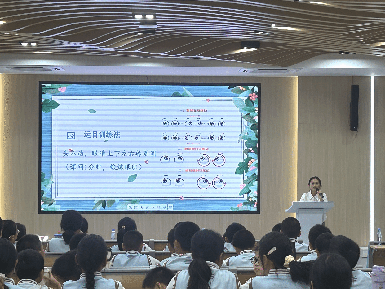 活动伊始,厦门大学医学院副院长、眼科研究所教工党员、眼科专家李炜教授在附校礼堂为师生们带来了一场别开生面的爱眼护眼知识讲座。李炜老师凭借专业的知识储备与丰富的临床经验,结合青少年日常用眼习惯,运用生动案例、直观图片与趣味视频,深入浅出地讲解了眼睛结构、眼科疾病成因及预防方法,巧妙融合专业医学知识与趣味互动,为孩子们揭开了眼睛的奥秘,让孩子们在轻松地氛围中掌握了护眼秘籍。随后,中医系研究生党员曾靖宇从中医理论视角出发,阐述了眼睛与五脏六腑的关系、中医护眼原理及方法,为孩子们普及了眼睛中医保健的相关知识。讲座过程中,穿插的爱眼知识抢答环节更是将现场气氛推向高潮,同学们踊跃举手,积极作答,在一问一答间加深了对护眼知识的理解。