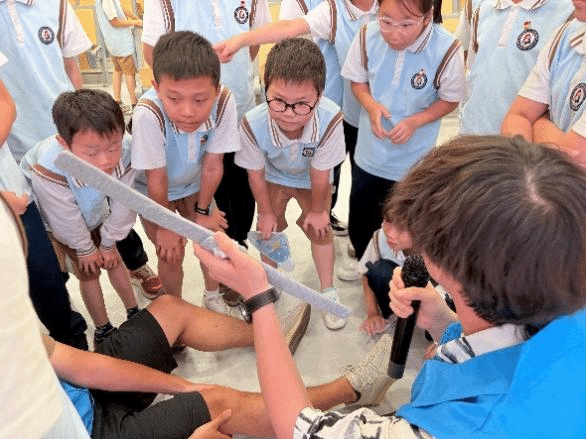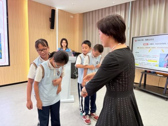 护理系教工党支部和翔安医院研究生第三党支部联合打造了急救技能培训小课堂。为孩子们讲解了在校园以及日常生活中实用的急救知识,党员们现场演示了海姆立克急救法、止血包扎、烫伤处理、中暑、骨折固定等实用急救技能,并鼓励孩子们亲自上阵模拟操作,现场互动热烈,孩子们踊跃走上台前,在老师们的悉心指导下,亲身体验学习急救步骤。通过讲解、演示和沉浸式互动,切实筑牢了校园生命安全防线。