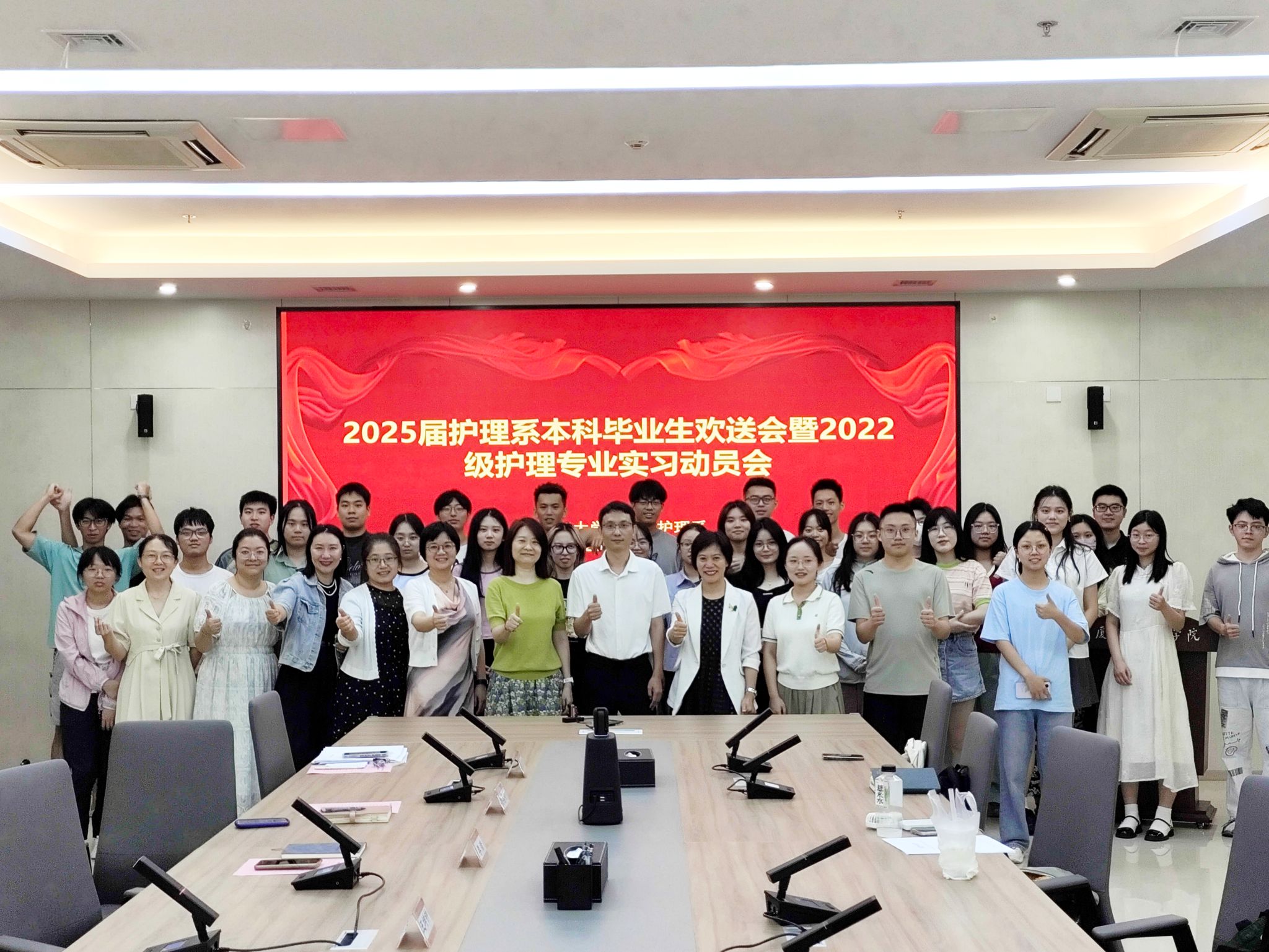 6月23日下午,医学院护理系于爱礼楼北楼106会议室召开护理系2025届本科毕业生欢送会暨2022级护理学专业实习动员会,2025届毕业生陈一雄同学主持,护理系全体教师以及2021级、2022级护理学专业本科生参加会议,本次会议还特别邀请到了医学院党委副书记王坤钟,院长助理/教务办主任李晴副教授,辅导员冉丽莎、杨盛澜等嘉宾出席。