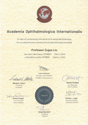 近日,在荷兰莱顿大学举行的国际眼科科学院(Academia Ophthalmologica Internationalis, AOI)50周年院士大会上,厦门大学医学院刘祖国教授入选国际眼科科学院院士。国际眼科科学院主席Richard L. Abbott教授以及执行理事为刘祖国教授授予AOI院士奖牌和证书。