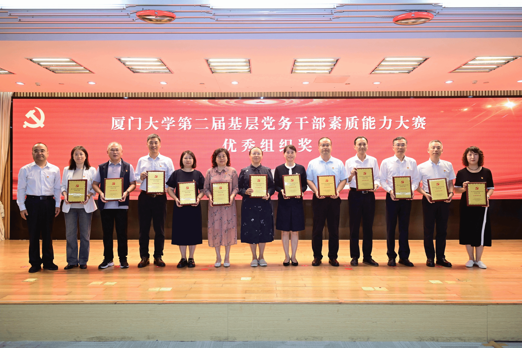 10 月 31 日晚,厦门大学第二届基层党务干部素质能力大赛圆满落幕。经过一个多月的多轮比拼与激烈角逐,医学院代表队凭借过硬的政治素养、出色的党务能力和从容稳健的现场表现,从全校 44 支参赛队伍中脱颖而出,最终荣获大赛二等奖及优秀组织奖,彰显了学院党务干部“党性强、业务精、作风实”的综合素养与专业担当。