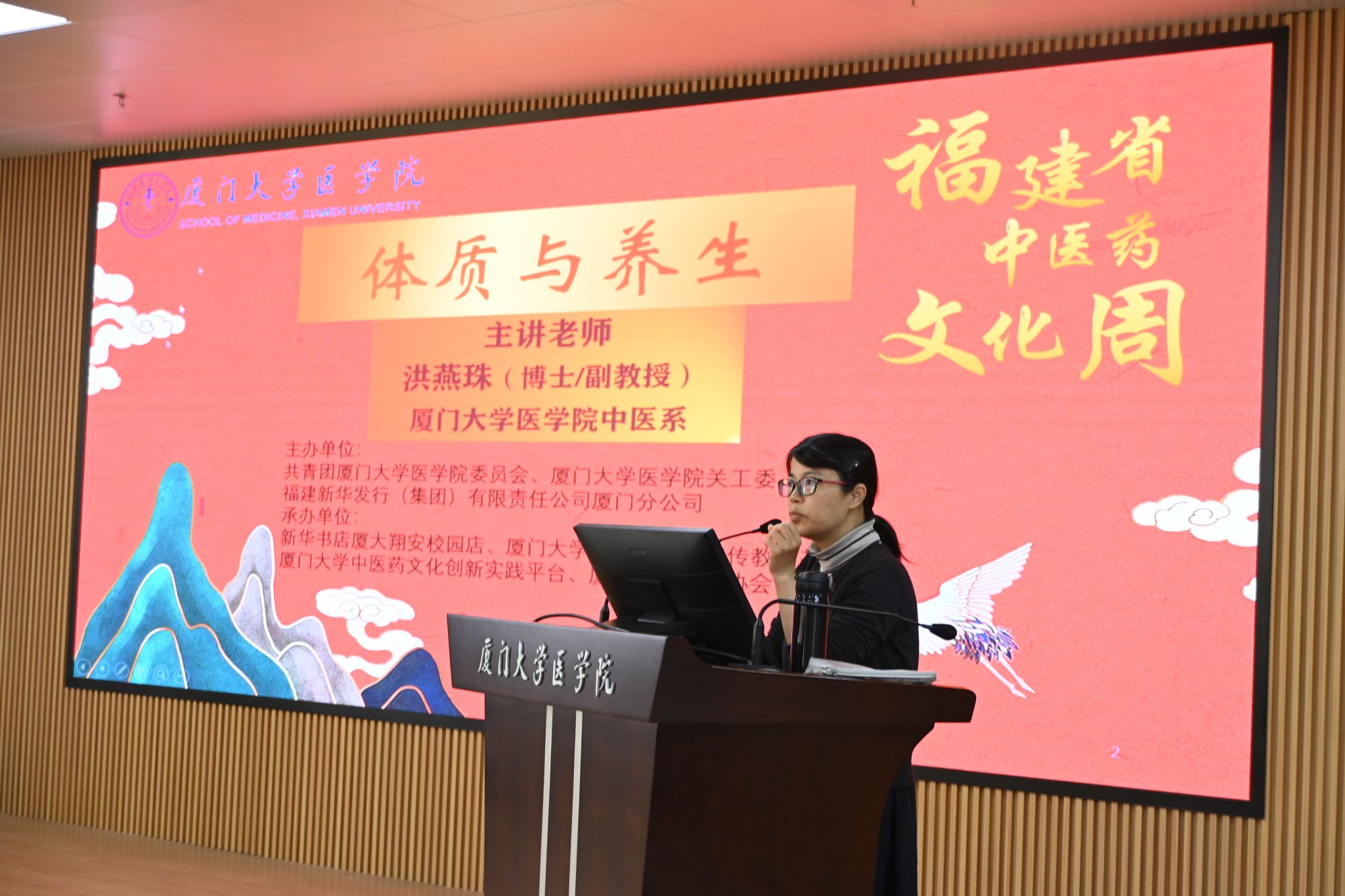 中医养生讲座在医学院爱礼楼104报告厅举办,讲座以“体质与药食养生的奥秘”为主题,由医学院中医系副教授洪燕珠老师讲授。洪老师向同学们科普了常见的九种体质辨识方法和日常调养,生动幽默的养生案例讲解引得同学们笑声不断。讲座还设有问答环节,同学们纷纷就自身或家人的健康、养生问题向洪老师请教,现场气氛热烈。在洪老师细致生动的讲解中,同学们对中医的养生原理与自我体质认知也有了更深的了解。
