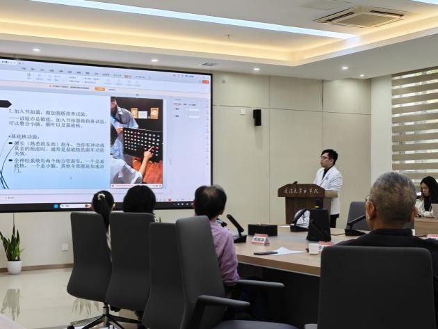 座谈会后,分校中医学院老师为现场师生带来中医领域前沿视角与实践经验的学术讲座。林志雄博士以《〈内经〉之五脏藏神》为题,从《内经》原典出发,深入浅出解读“五脏藏神”的核心学术思想,分享了经典教学与临床实践相结合的教学心得。黄国霖博士带来《从前庭与小脑入手:手抖康复治疗的新视角》专题分享,结合临床案例详细阐述了手抖康复的创新思路。