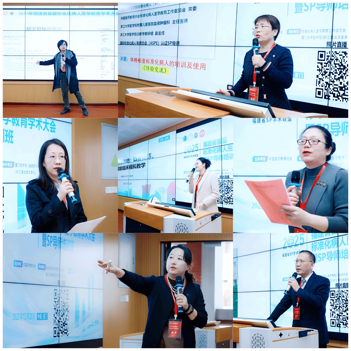 学术讲座环节由厦门大学医学院SP项目负责人、大会秘书长杨玲主持,多位专家带来精彩分享。浙江大学医学院SP项目负责人、中国医药教育协会SP工委会常务委员石淑文以《体格检查标准化病人的培训及使用》为题,结合浙江大学的实践经验讲解了体格检查SP培训的核心要点与应用技巧;厦门大学医学院余丹、福建医科大学陈建胜、厦门医学院程微子三位大会负责人,分别围绕各自院校 SP 医学教育实践作工作报告,分享了在课程建设、师资培育、教学应用、教育研究等方面的宝贵经验,为参会者提供了丰富的借鉴思路。