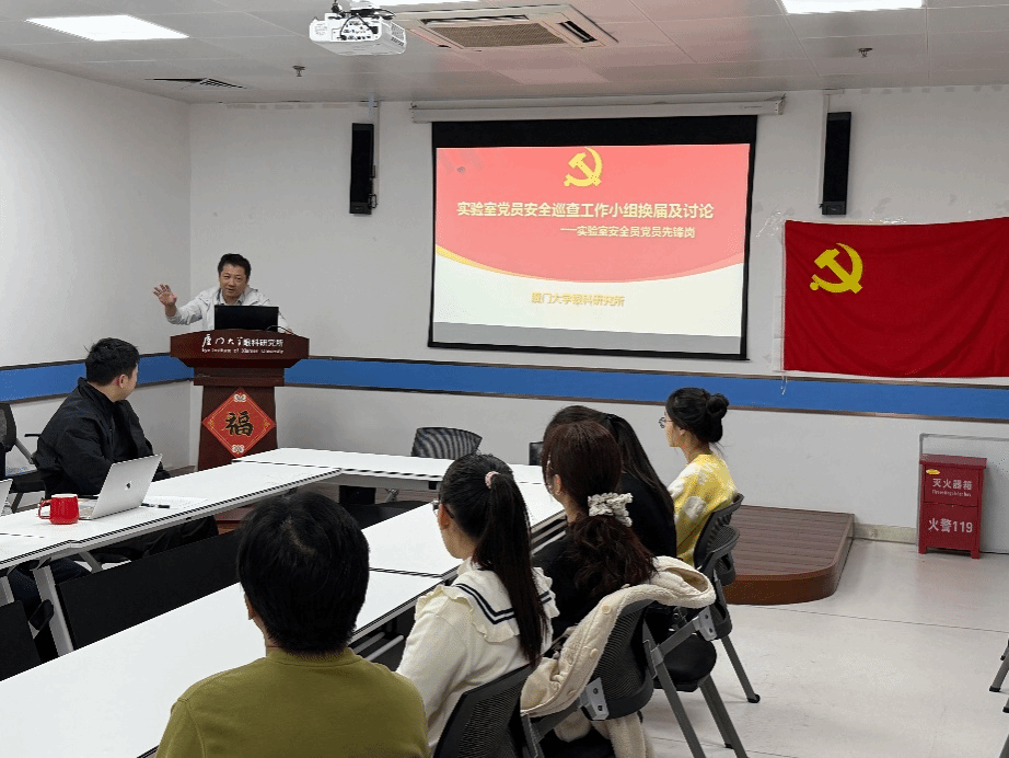 会议伊始,黄彩虹介绍了换届的背景和目的,同时全面回顾了第一届实验室党员安全巡查工作小组的工作成果:小组定期开展实验室安全巡查,及时排查安全隐患,有效改善了实验室环境;牵头打造实验室安全文化墙,将安全知识与党建元素有机结合,营造出"人人讲安全、事事为安全"的浓厚氛围;创新开展党员先锋实验台评比活动,以标杆引领激发全体科研人员的安全意识与责任担当,让党员先锋模范作用在科研一线落地生根。