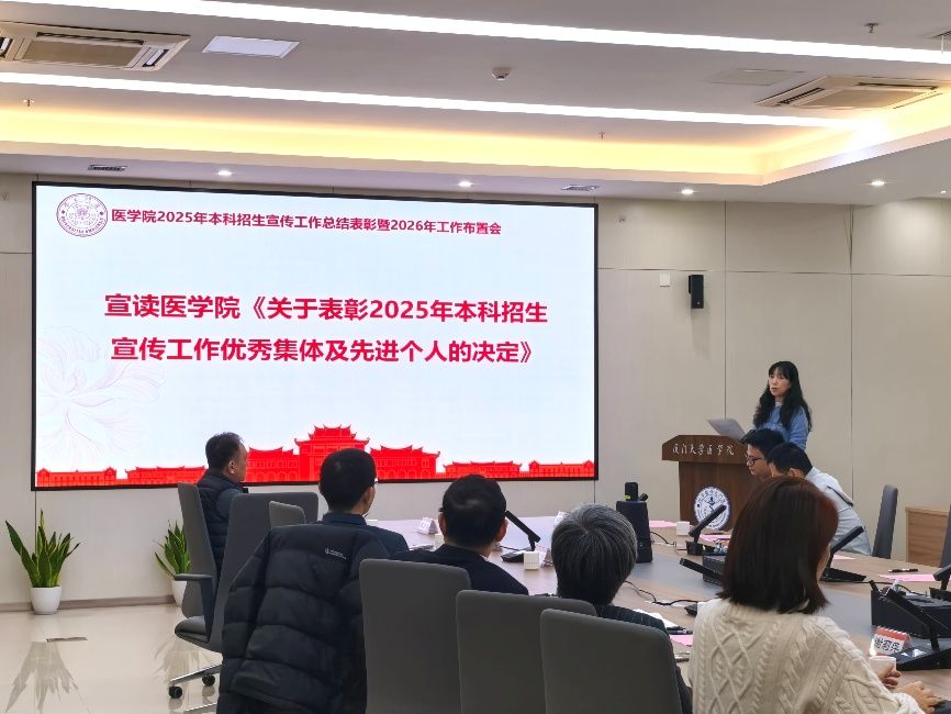 招生宣传工作关系到学校和学院人才培养的质量与长远发展,责任重大,使命光荣。此次会议既是一次总结表彰会,更是一次凝聚共识、启航新程的动员会。医学院全体招生工作人员将以更加饱满的热情、更加创新的思路和更加扎实的作风,为提升生源质量、推动学院与学校事业高质量发展贡献力量。