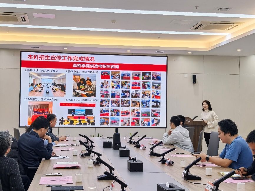 会议在庄重热烈的气氛中开始。李晴首先作主题报告,全面回顾总结了2025年学院本科招生宣传工作的整体情况、取得的成效与工作思考,并对2026年的招生宣传工作目标、重点任务进行了详细说明与布置,为下一步工作明确了方向。