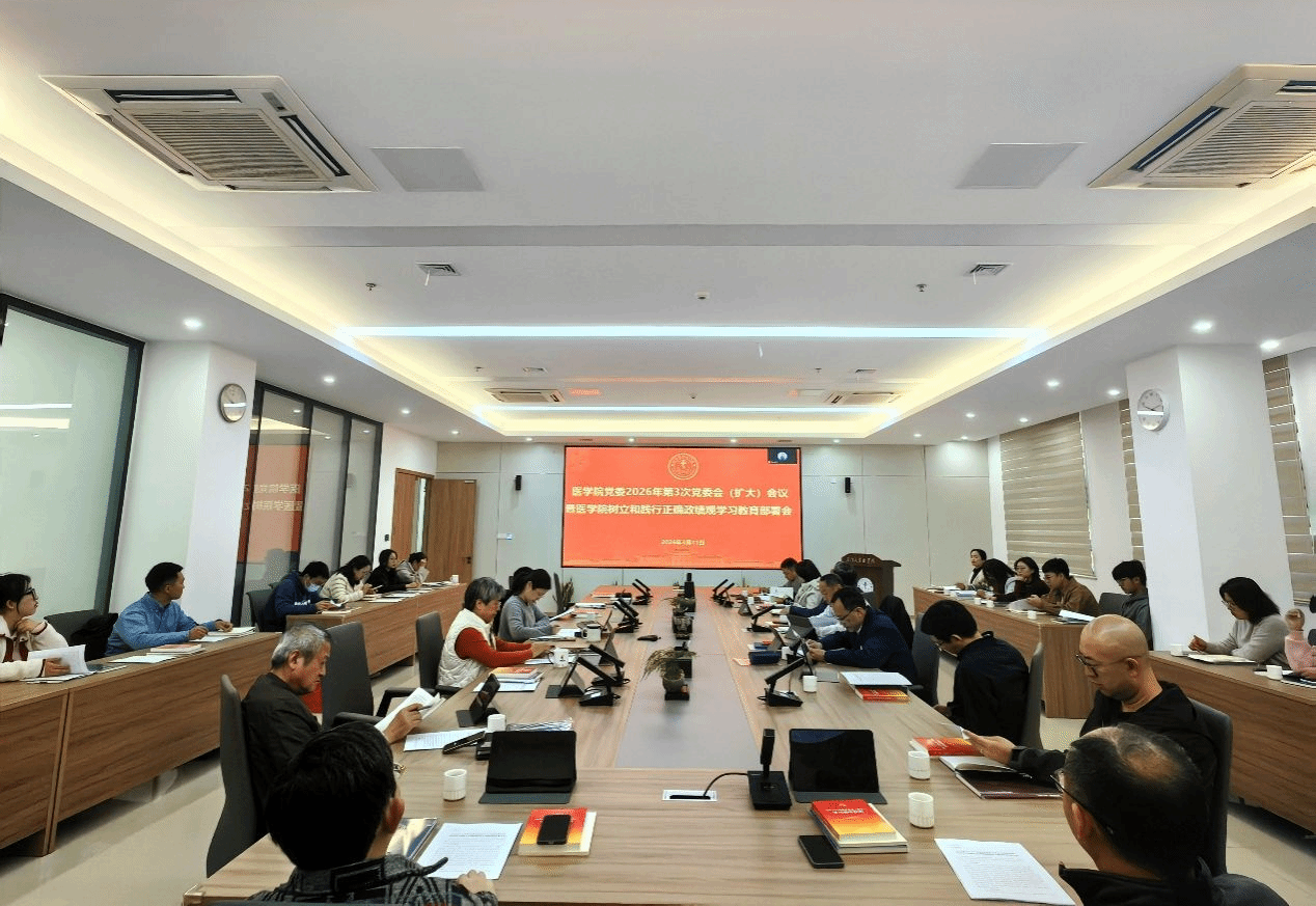 3月11日下午,医学院党委在翔安校区爱礼楼北楼106会议室召开2026年第3次党委会(扩大)会议,部署启动开展树立和践行正确政绩观学习教育。厦门大学基层党建工作联络员梁卫中莅会指导。学院党委书记李峰主持会议并作动员讲话。学院领导班子成员、党委委员以及全体党支部书记参加会议。